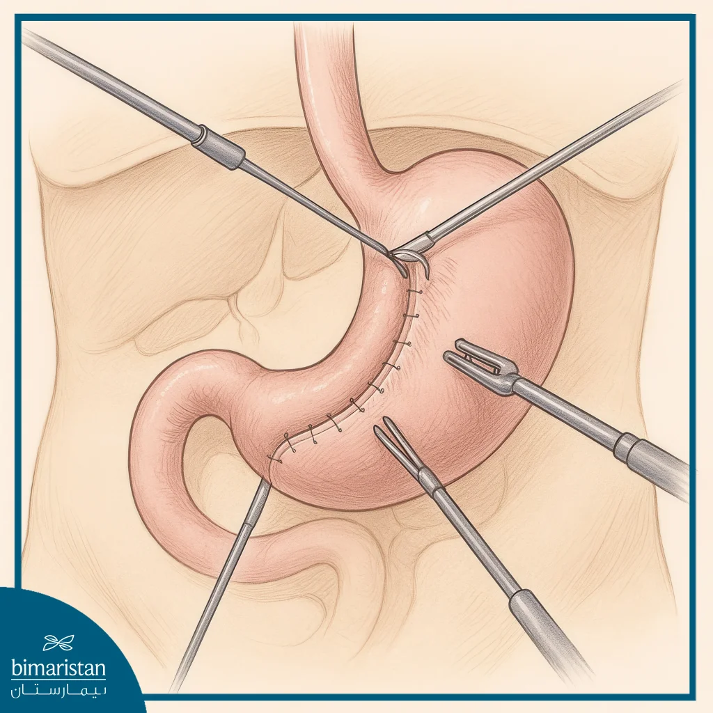 - تثبيت الطيات: يتم تثبيت الطيات باستخدام الغرز الجراحية لضمان بقاء المعدة في شكلها الجديد.